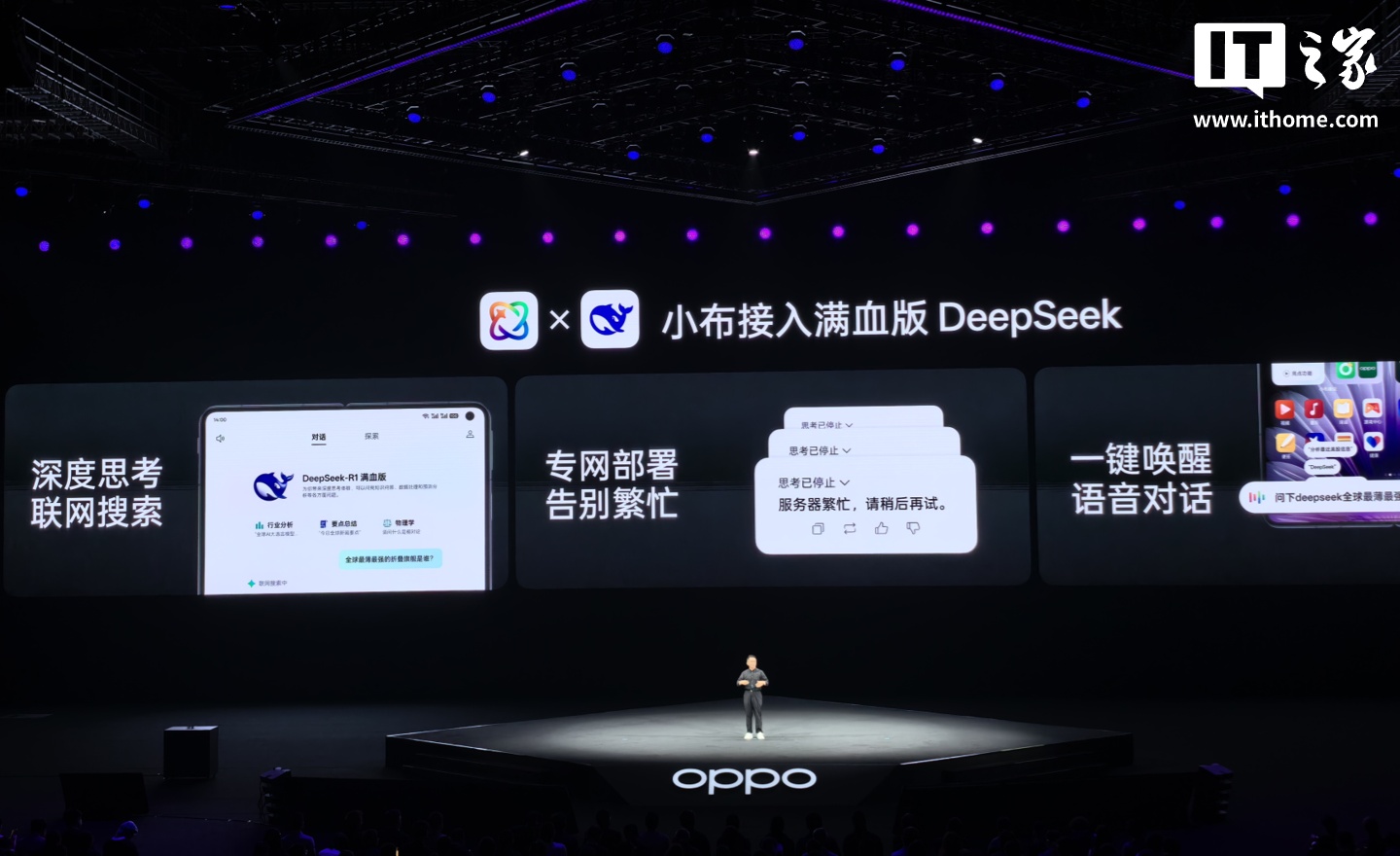 此外,OPPO 小布助手已全面接入 Deepseek-R1 满血版,支持深度思考联网搜索、专网部署告别繁忙,一键唤醒语音对话。