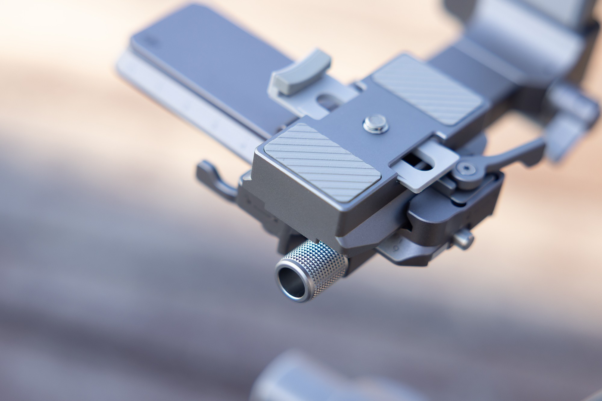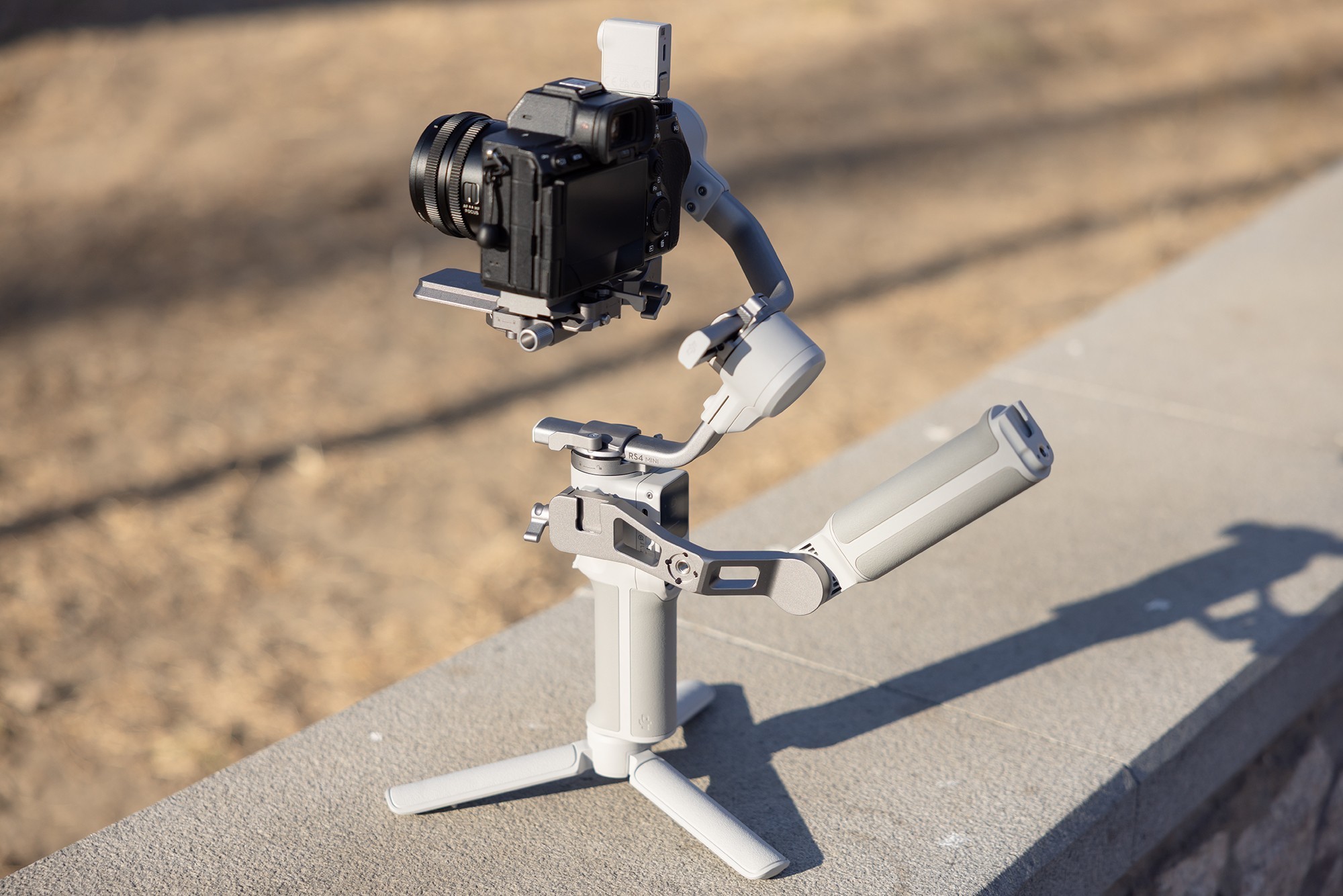 DJI RS4 Mini最大的变化是采用了浅色配色设计。相比于传统黑色外观给人的专业感,浅灰色的外观让稳定器看起来更轻盈,外观也更加时尚。