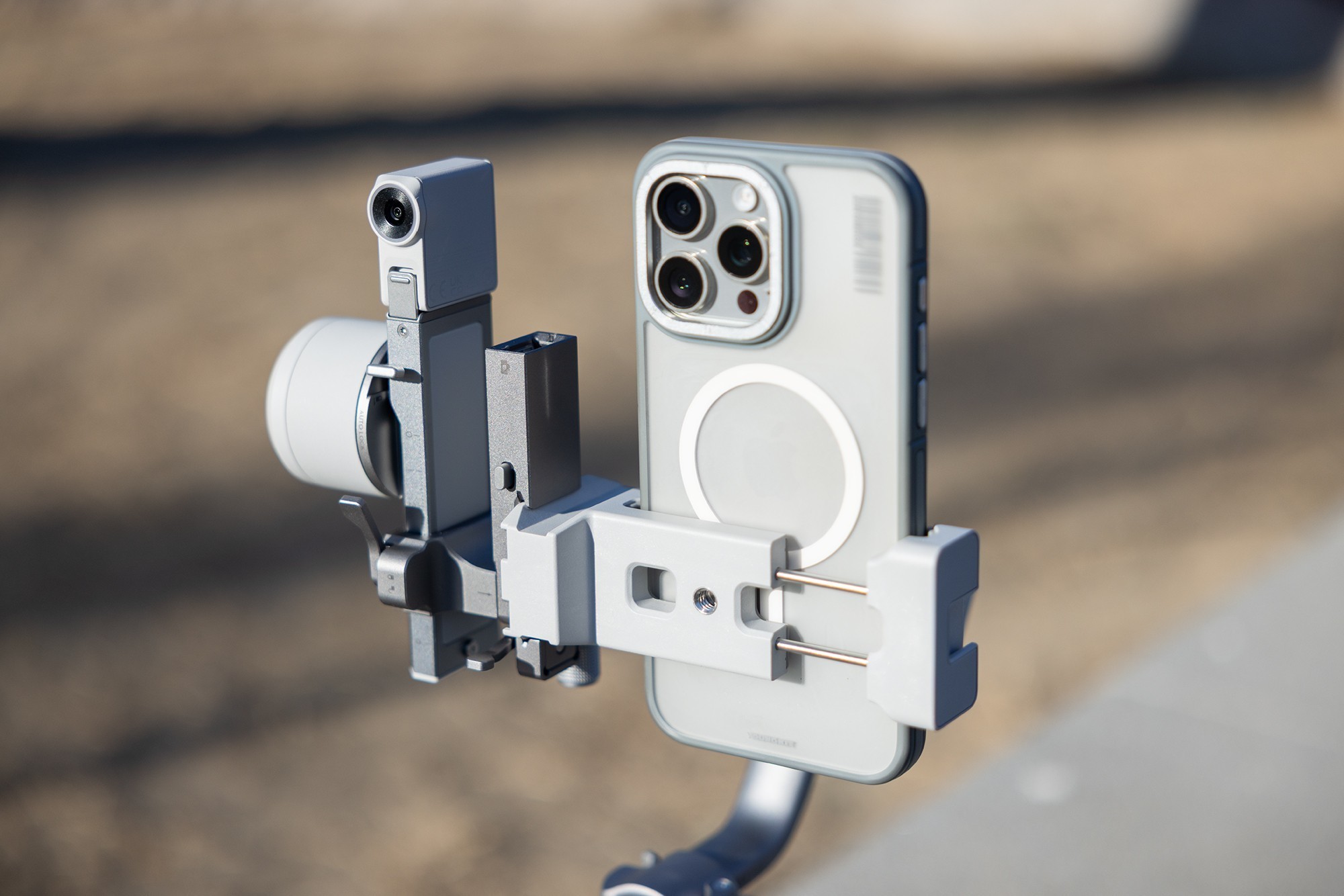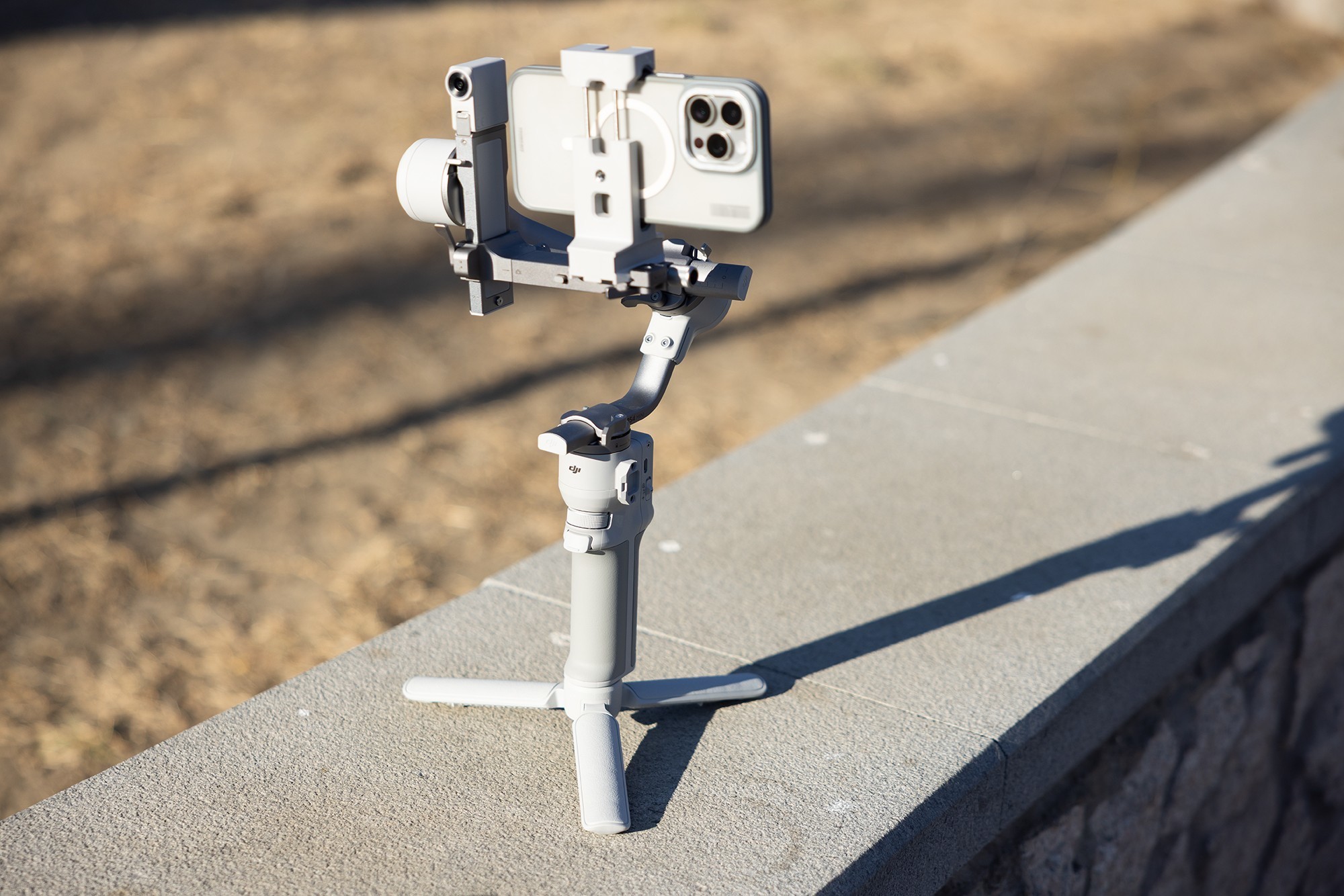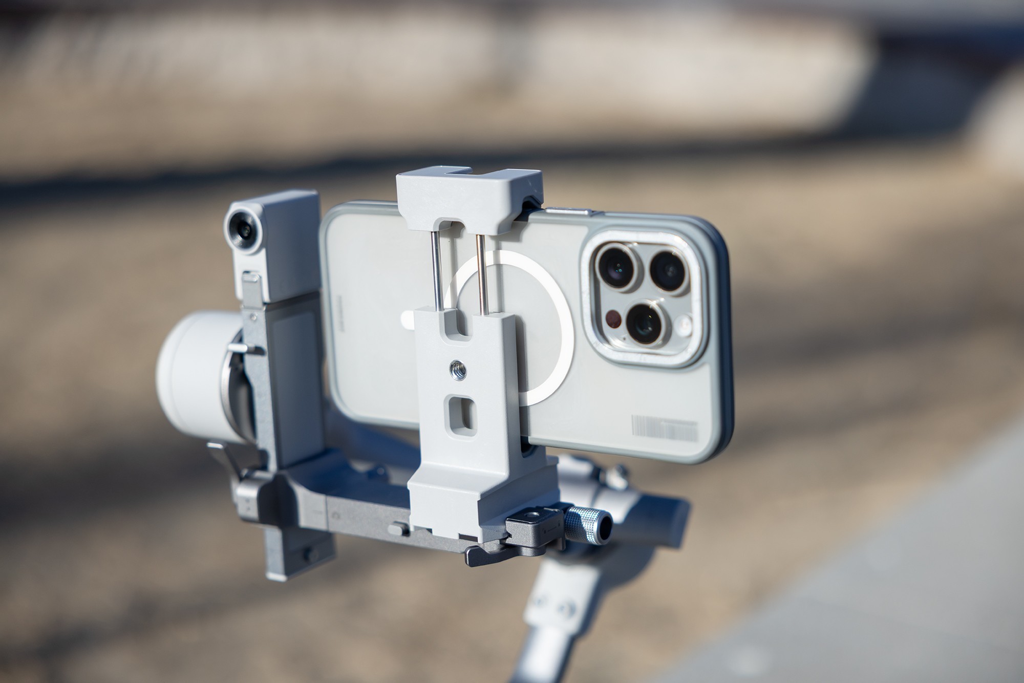 另外,DJI RS4 Mini也可以搭配DJI RS4 Mini手机夹使用,快速在相机和手机之间切换,满足不同拍摄器材和拍摄需求,也拓展了稳定器的使用范围。