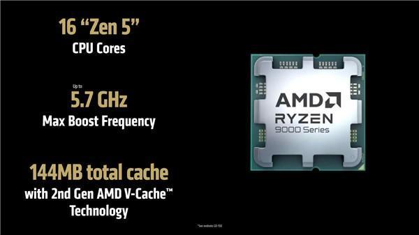锐龙9 9950X3D主要面向AM5 DIY发烧友和游戏玩家,为16核心、32线程,16MB二级缓存、64MB原生三级缓存,加上64MB 3D缓存,缓存总量共计144MB。而且最高加速频率没降,和锐龙9 9950X一样为5.7GHz,TDP 170W,支持超频。