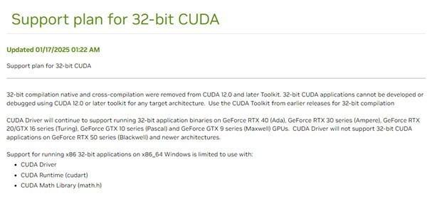 根据NVIDIA最新发布的支持规划,RTX 50系列显卡已经不再支持32位CUDA应用,Physx恰好就是32位的,没有任何64位游戏采用Physx,这等于就直接放弃了,不过RTX 40系以前的显卡还是支持的。