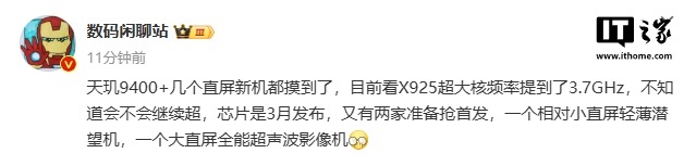 IT之家注意到,该博主此前曾爆料称,一加、真我和 REDMI 都计划在年中前后推出搭载联发科天玑 9400+ 处理器的新机型。上个月还爆料称天玑 9400 + 目前看 X925 超大核频率提到了 3.7GHz,3 月发布,又有两家准备抢首发,一个相对小直屏轻薄潜望机,一个大直屏全能超声波影像机。