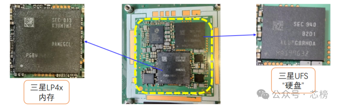 进一步拆解,摘掉表层的散热通道和护板后,我们可以看到这不是一颗典型的CPU,而是一块SoC的小主板,集成了三星的内存和硬盘;图标③处是空的,原来原因在这。