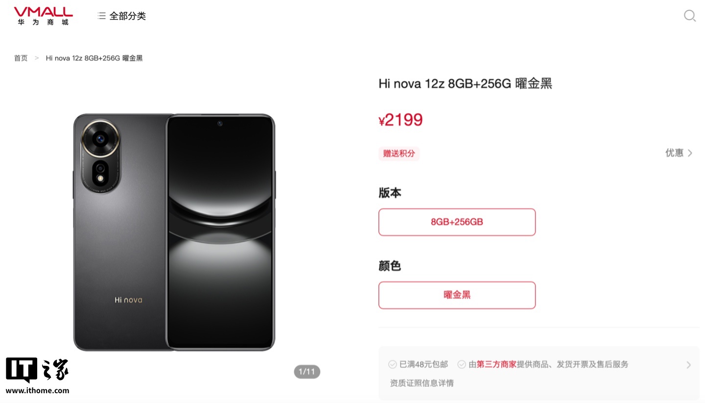 IT之家 2 月 22 日消息,Hi nova 12z 手机现已上架华为商城,仅提供“8GB RAM + 256GB 存储空间”的“曜金黑”配色可选,定价为 2199 元,但目前处于无货状态。