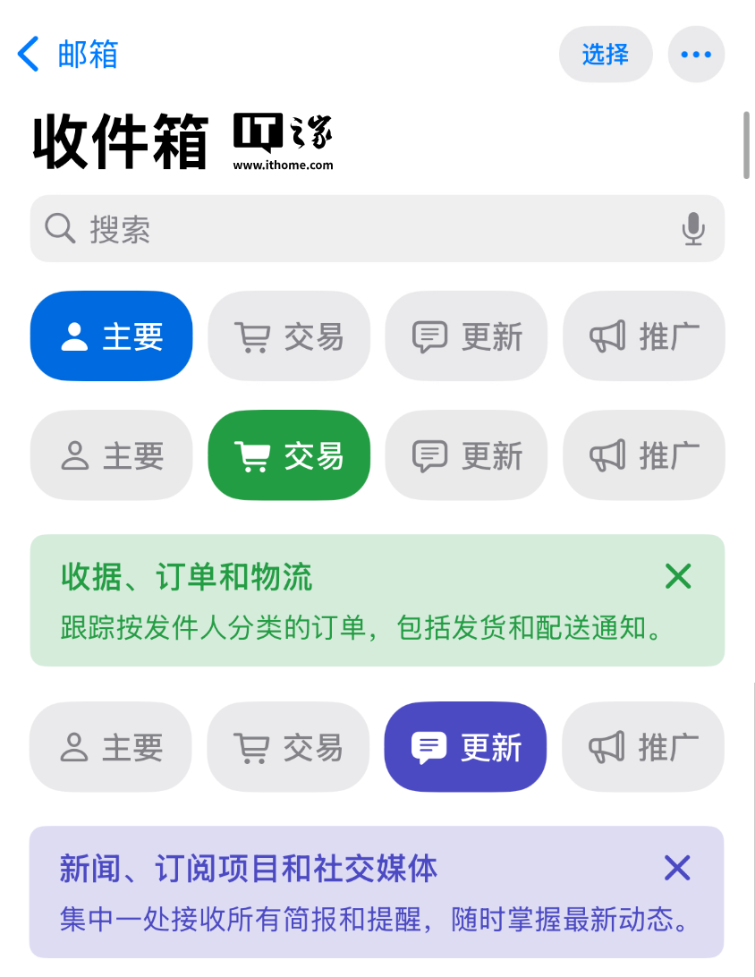 此外,邮件应用的新分类设计也上线了 iPadOS 与 macOS。