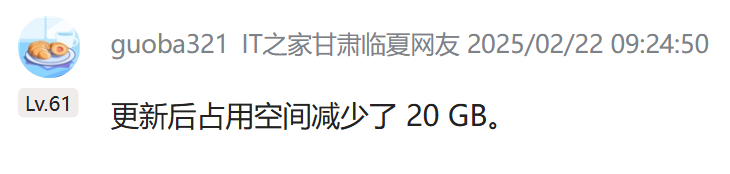 也有家友反馈更新后占用空间大幅减少,小编自己的手机上没有 20GB 这么大的幅度,但确实也腾出了好几个 GB 的空间。