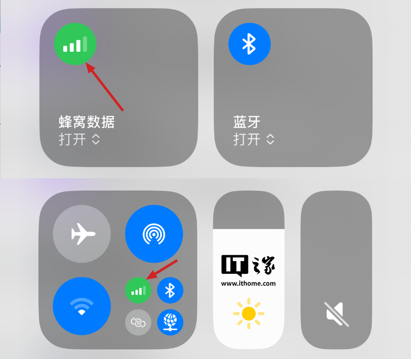 控制中心还有一些其他的小改变,比如当前的信号强度会在蜂窝数据按钮上实时显示、最低亮度及音量时图标显示为白色等,就有待家友们陆续发现了。