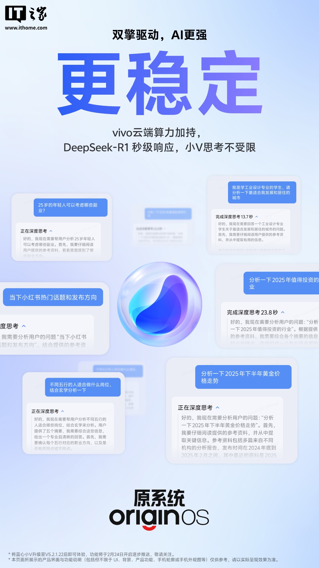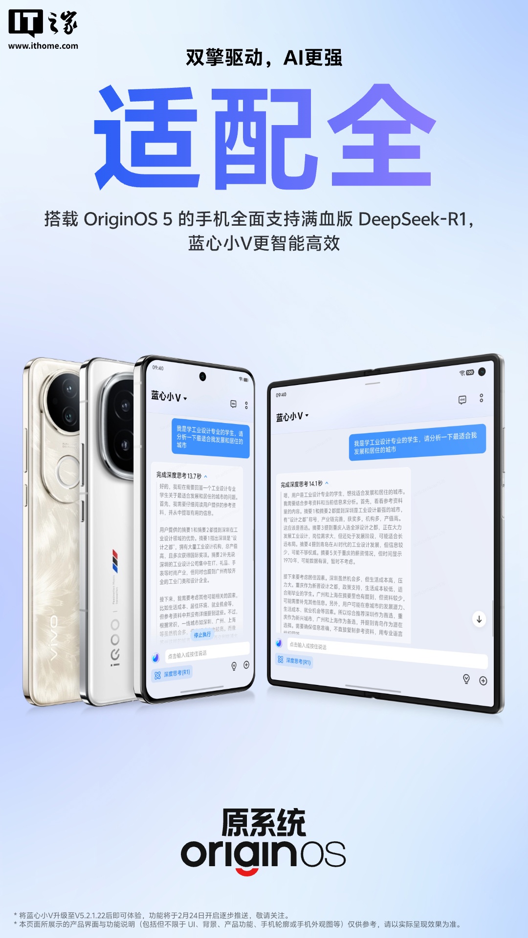 IT之家从 vivo 官方获悉,搭载 OriginOS 5 的机型均支持满血版 Deep-R1。