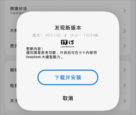IT之家注意到,vivo 已于昨日(2 月 24 日)为旗下部分机型灰度更新了 5.2.1.22 版本蓝心小 V,新增支持 DeepSeek 大模型能力,可提供深度思考功能。