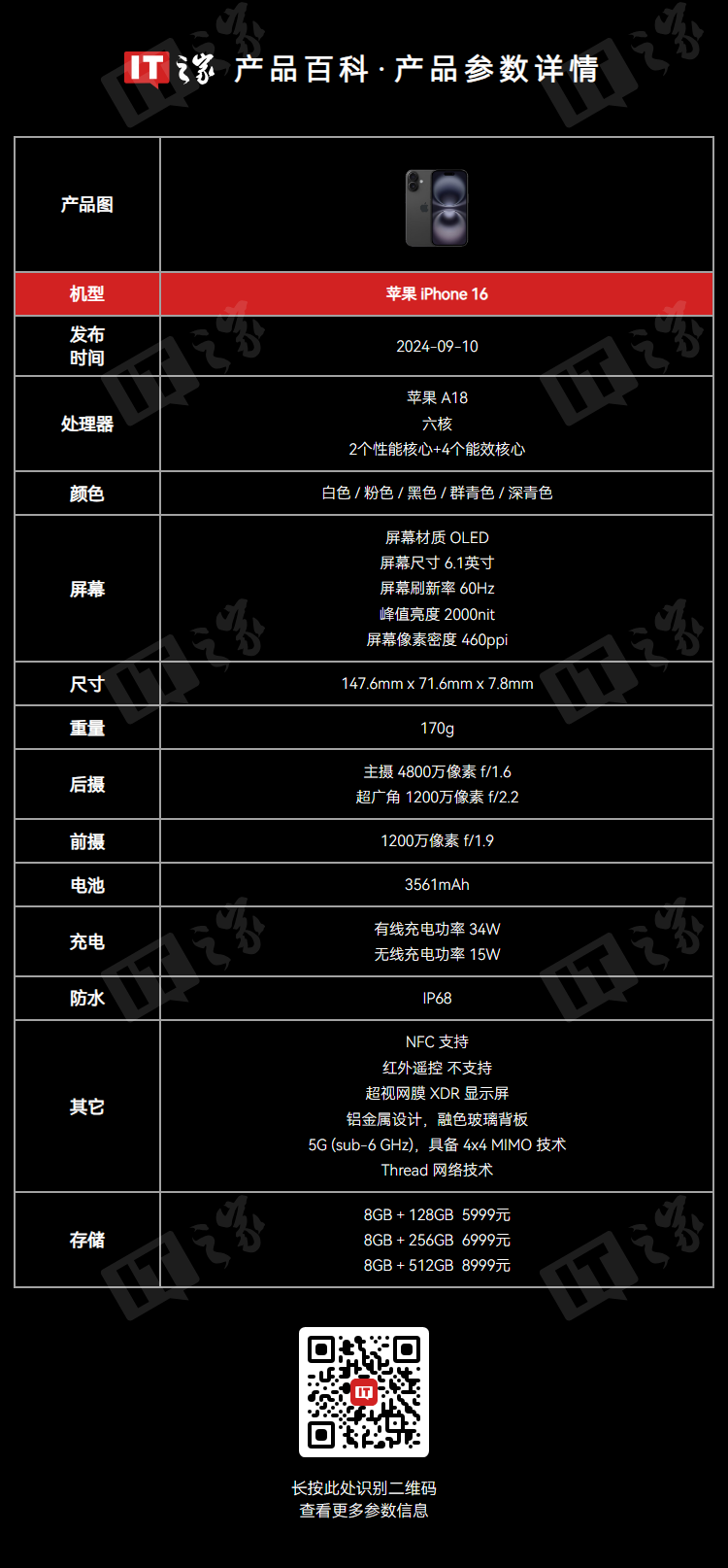 iPhone 16 手机 256G 版发售价为 6999 元,今日活动价为 5999 元: