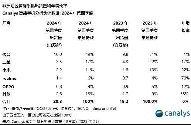 文章来源于互联网:IT之家-Canalys:2024 年非洲智能手机市场增长 9%,传音稳居第一
