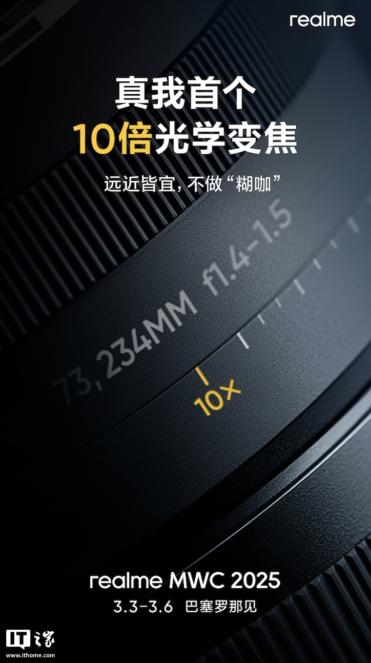 文章来源于互联网:IT之家-realme 真我新机将亮相 MWC 2025:索尼一英寸影像旗舰、支持 10 倍光学变焦