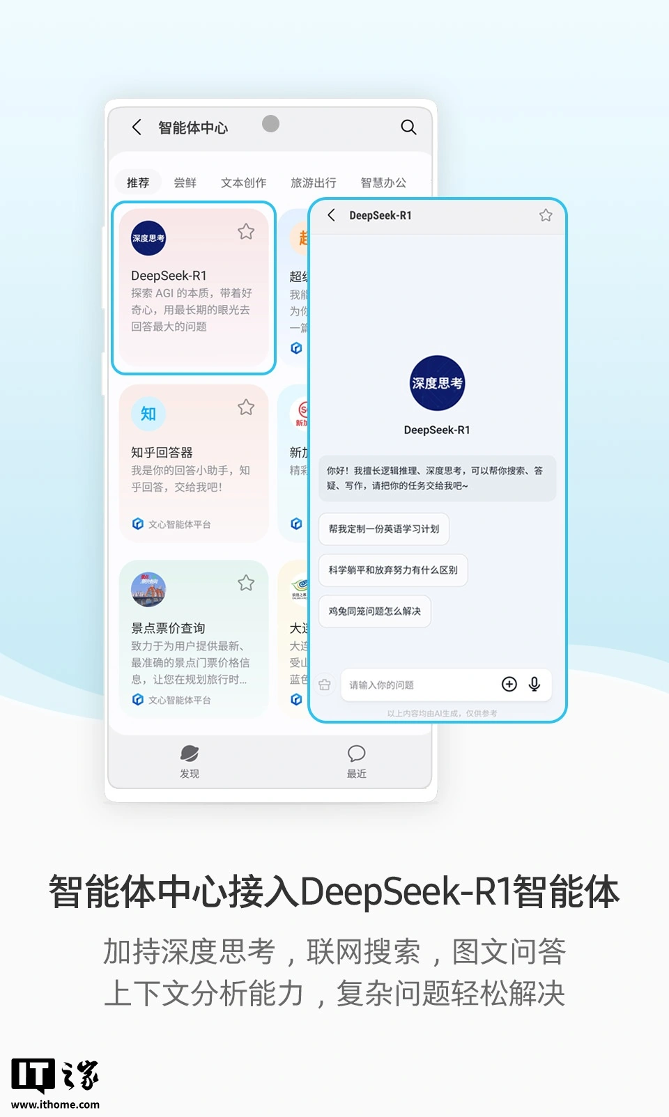 文章来源于互联网:IT之家-三星生活助手 App 智能体中心接入 DeepSeek-R1