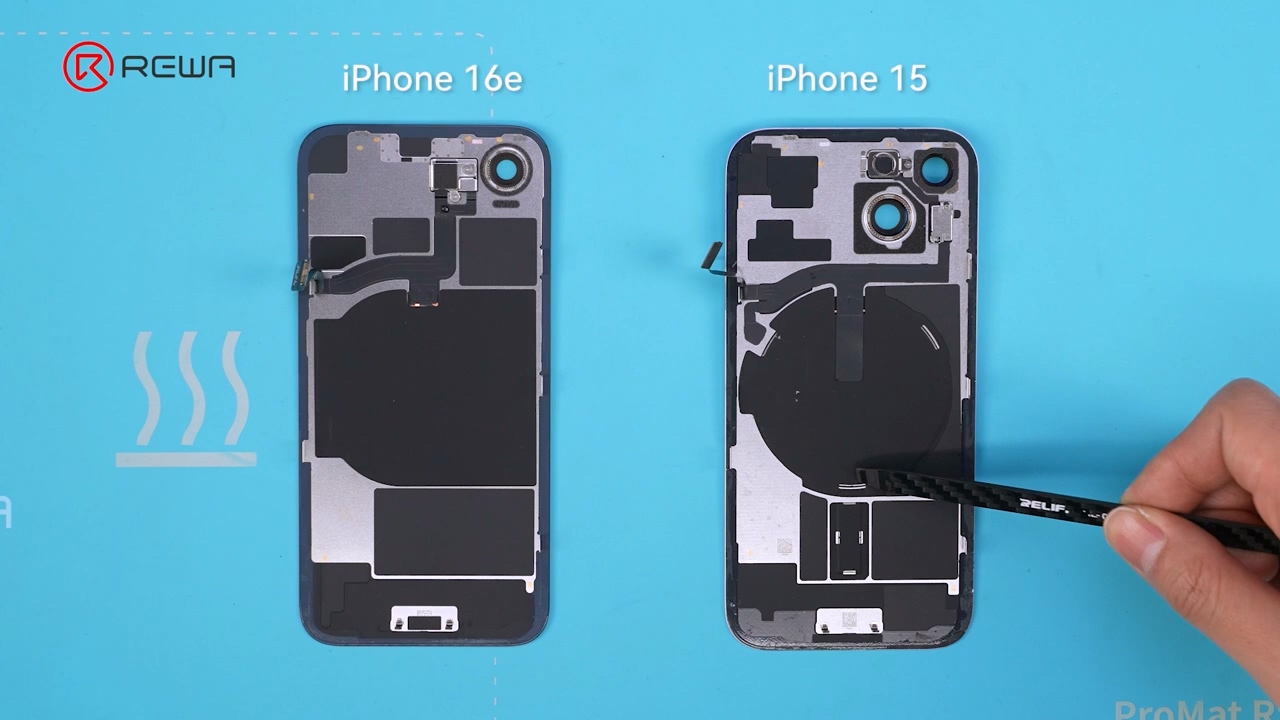 最后,视频还显示 iPhone 16e 缺少用于无线充电的 MagSafe 磁铁。