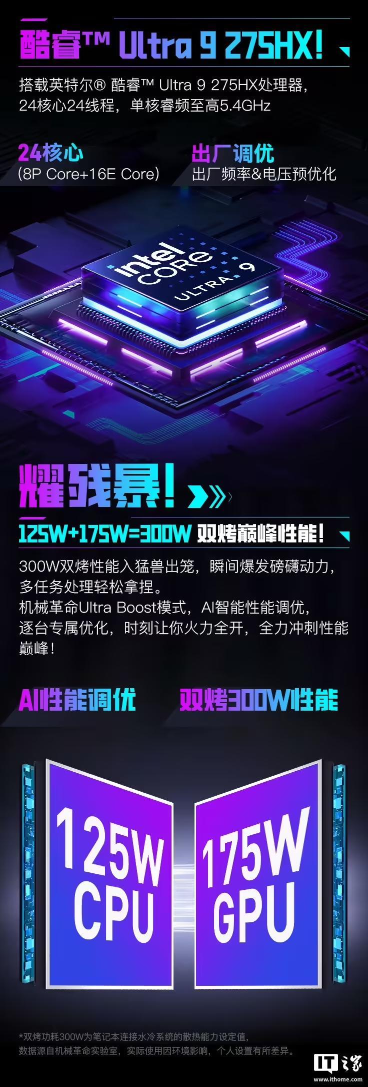 性能方面,该机搭载 24 核心 24 线程英特尔酷睿 Ultra 9 275HX 处理器,原装配备 64GB DDR5 SO-DIMM RAM 和 2TB SSD,拥有 PCIe 5.0×4 M.2 接口。