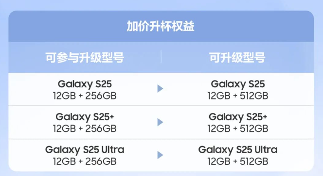购买 Galaxy S25 手机 12GB+256GB,加价 500 元可升级到 12GB + 512GB
