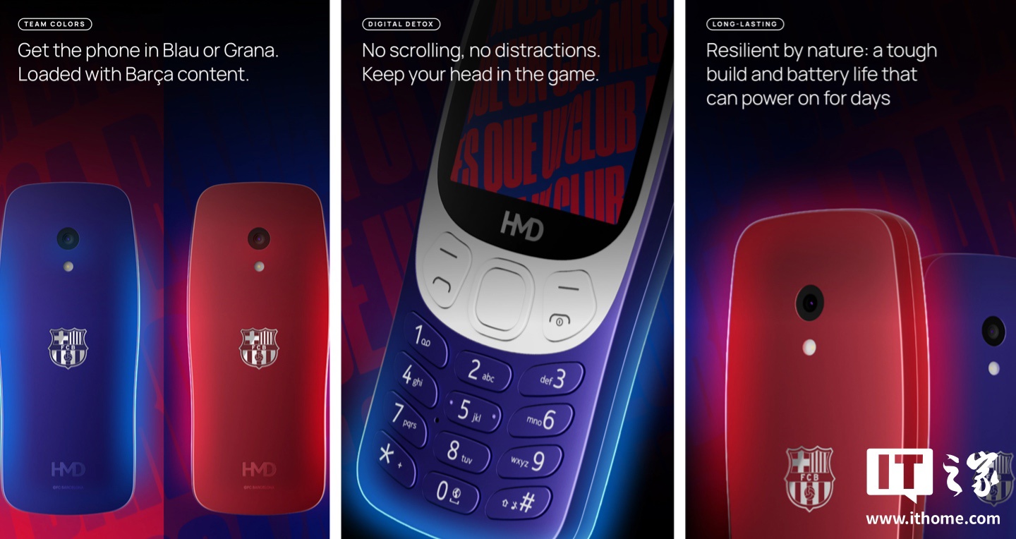 文章来源于互联网:IT之家-HMD Global 发布巴塞罗那足球队联名 3210 功能机 / Fusion 智能机