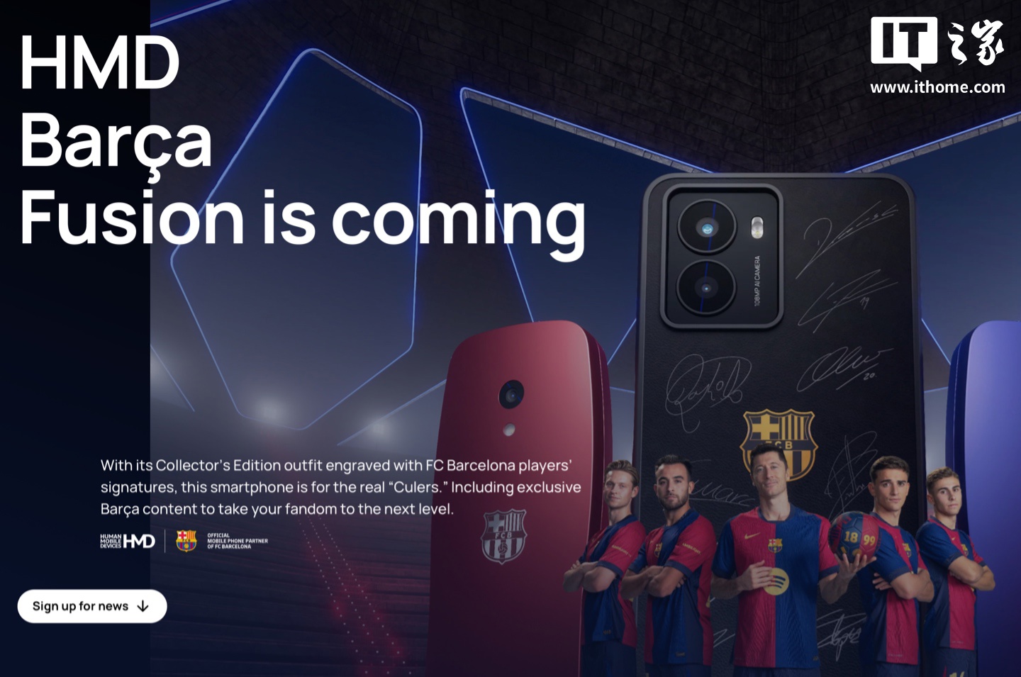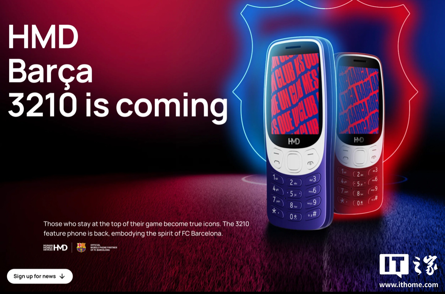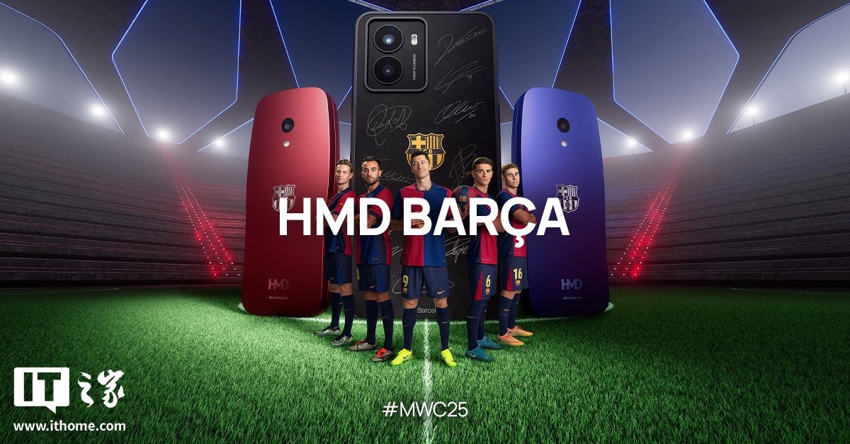 IT之家 3 月 2 日消息,在目前正在进行的 HMD Global 巴塞罗那发布会上,HMD Global 发布了一款巴塞罗那足球队联名的 HMD 巴塞罗那 3210(HMD Barça 3210)功能机和一款 HMD 巴塞罗那 Fusion(HMD Barça Fusion)智能机,定价暂未公布。