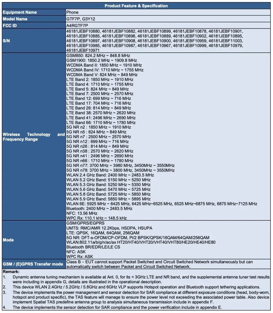 FCC 数据库显示,谷歌提交了三款设备,型号分别为 GXQ96、GTF7P 和 G3Y12。虽然 FCC 文件通常不会透露太多信息,但认证文件确认了 Pixel 9a 手机支持的频段,此外确认支持 NFC、Wi-Fi 6E 以及无线充电功能。