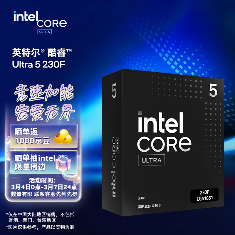 京东英特尔酷睿 Ultra 5 230F 台式机处理器 1999 元直达链接