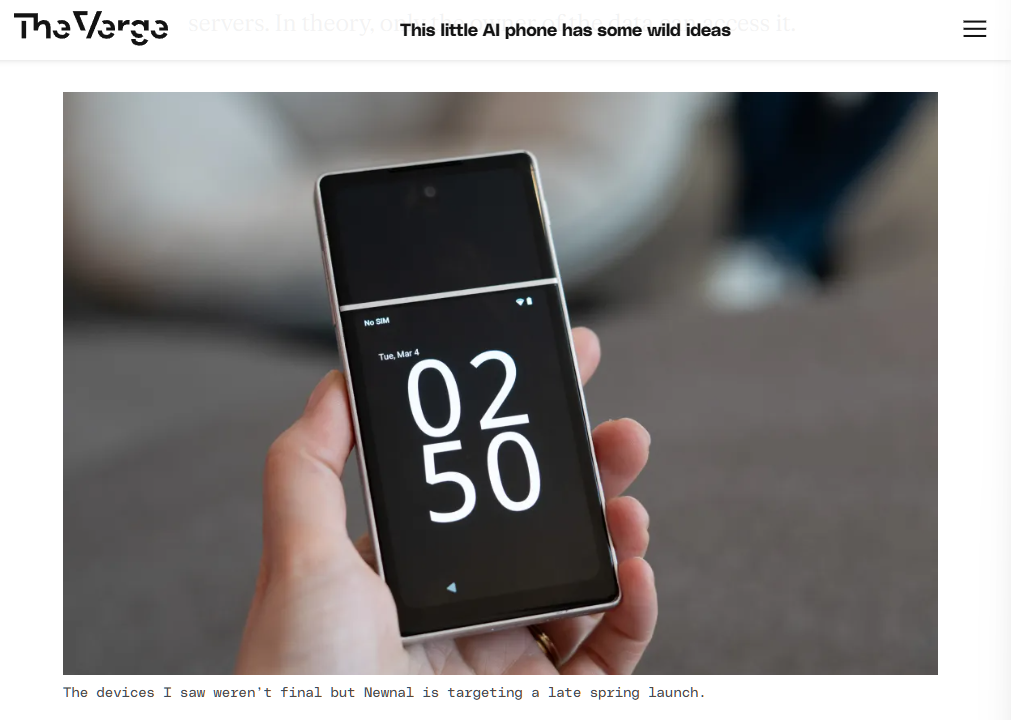 综合官方新闻稿及外媒 The Verge 的报道,Newnal 的 AI 手机会根据用户的个人信息训练一个 AI 模型,因此需要大量数据。