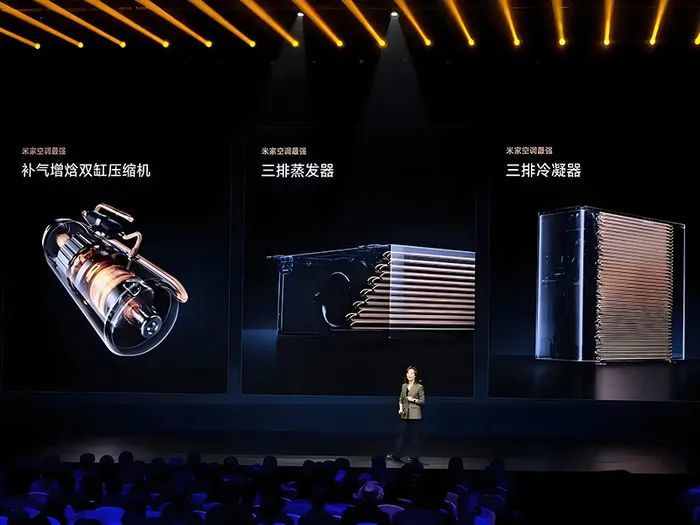 首先是新品在技术方面的表现。这款全新推出的米家中央空调Pro采用了补气增焓双缸压缩机,性能强劲且可以在-28℃-65℃的宽幅温度下运行。内机部分配有三排蒸发器,让铜管换热面积提升21.5%。在外机部分还采用了三排冷凝器、582mm大直径风扇,能强化中央空调的换热效率。中央空调的能耗一直是用户关注的重点,而小米此次在节能技术上也做出了突破。米家中央空调Pro搭载全直流变频压缩机+智能节能算法,相比传统中央空调,在相同使用条件下可以节省15%-20%的电费。这让小米中央空调Pro在功能上更为强劲,使用体验也更为舒适。