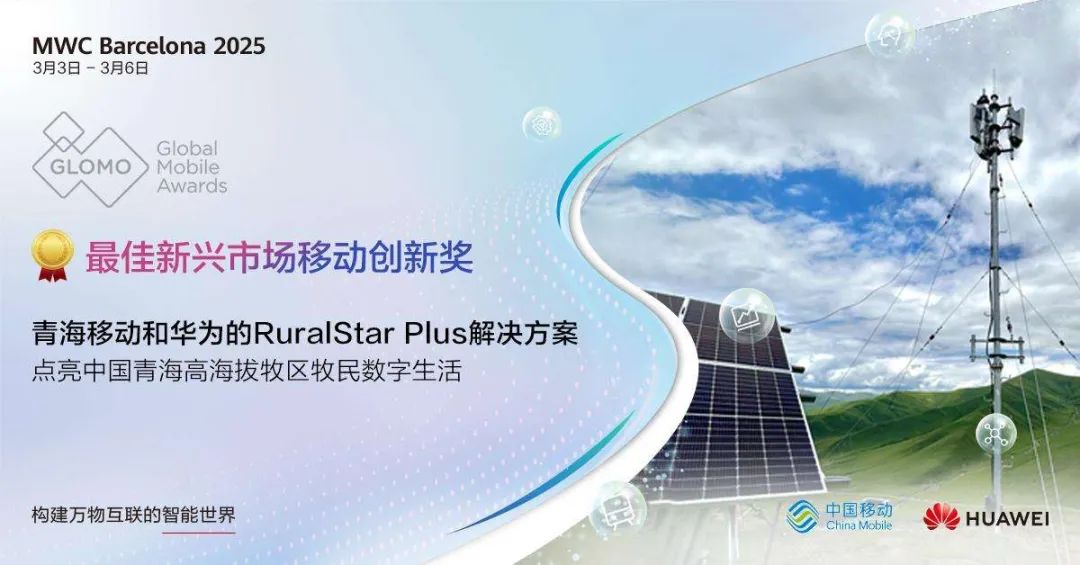 中国移动青海公司联合华为共同创新应用的智能无线 RuralStar Plus 解决方案荣获 GSMA GLOMO“最佳新兴市场移动创新奖”。RuralStar Plus 充分利用了当地丰富的太阳能资源,快速构建绿色、简约、易于部署的 4G / 5G 网络。此外,整站设备支持远程智能维护,减少了上站次数,有效缓解了维护人力资源稀缺问题。RuralStar Plus 创新解决方案,助力偏远地区跨越数字鸿沟,提高藏区群众的生活品质。同时,在高原生态保护、自然灾害预警等方面发挥巨大作用。