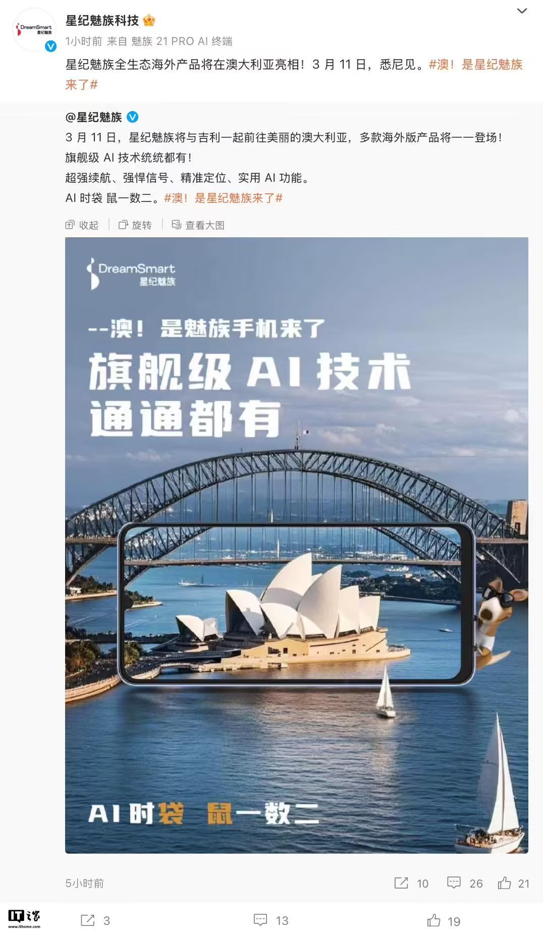 文章来源于互联网:凤凰网-星纪魅族3月11日澳大利亚悉尼举办发布会:展示全生态海外产品、有望推出mblu 22手机