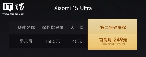 文章来源于互联网:IT之家-小米 15 Ultra 手机“第二年碎屏保服务”上线,4 月 1 日前购买可享 249 元优惠价