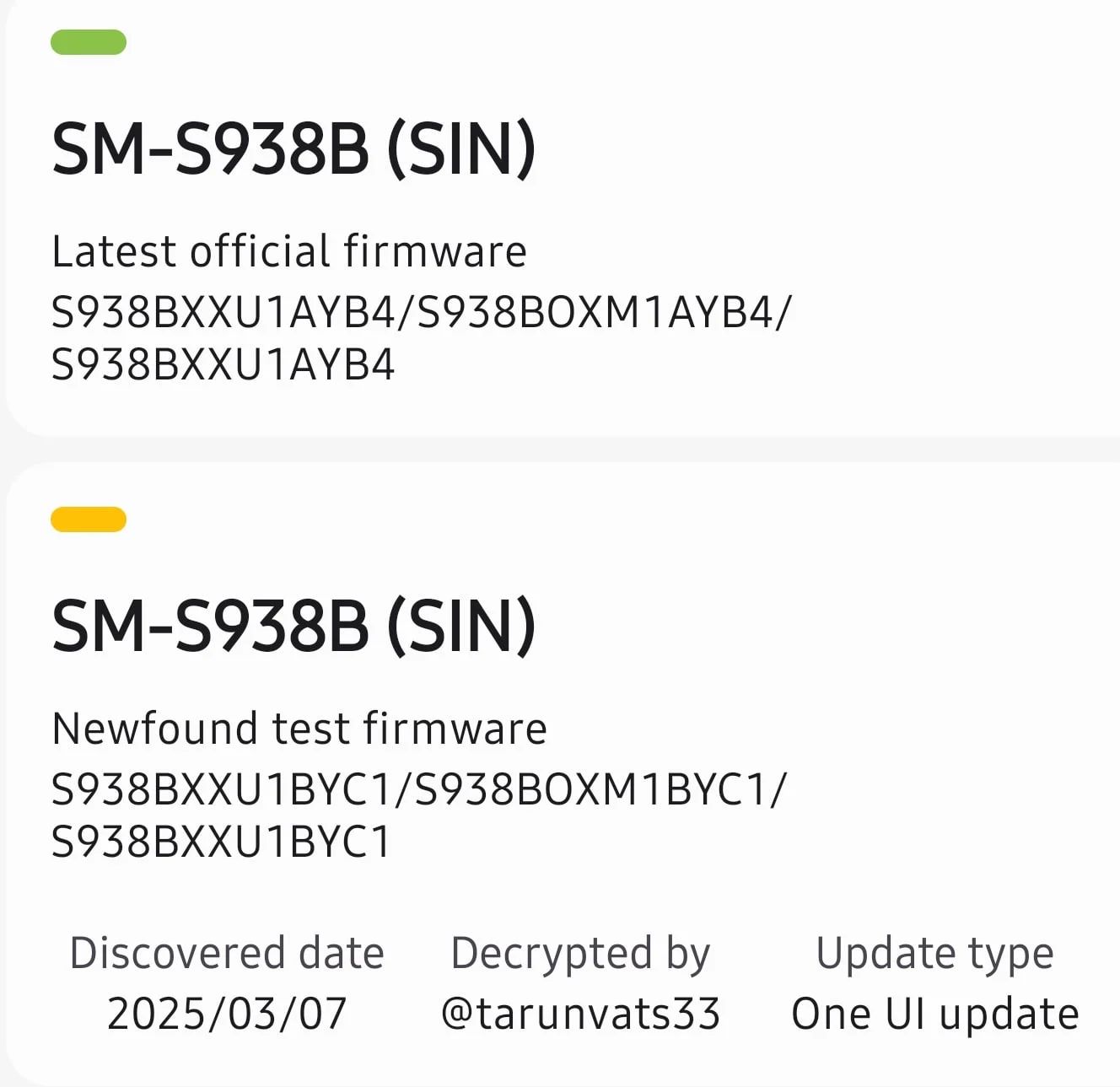 Galaxy S25 Ultra 的最新官方固件以 AYB4 结束,而测试构建已上传为 BYC1,从 A 切换到 B,通常代表主要 UI 升级,可能就是基于安卓 16 的 One UI 8 系统。