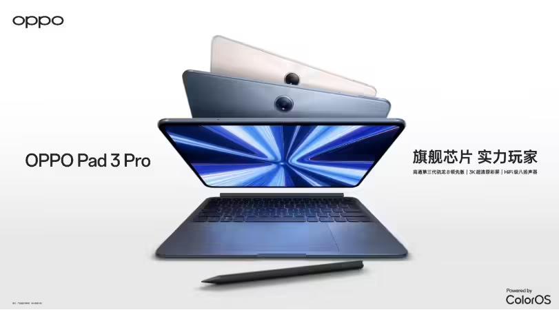 IT之家注意到,OPPO Pad3 Pro 平板于去年 10 月发布,接入 AI 能力、搭载骁龙 8 Gen3 领先版处理器、3K 超清原彩屏、144Hz 动态刷新率、HiFi 级八扬声器,定价 3299 元起。