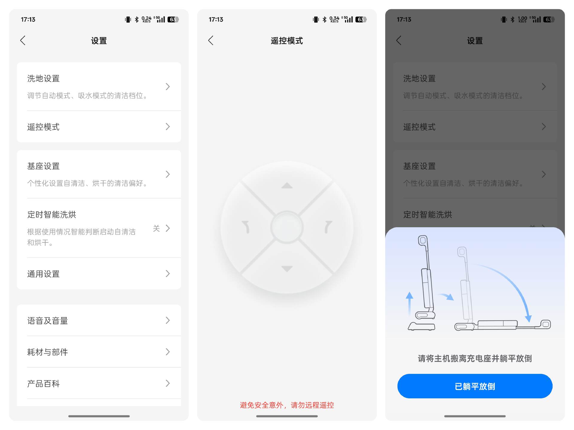 更值得一提的是,App 内甚至还提供了一个“遥控”的选项,当石头 A30 Pro Steam 在“躺平”后,用户可以用手机遥控设备的方向,就像遥控车一样。