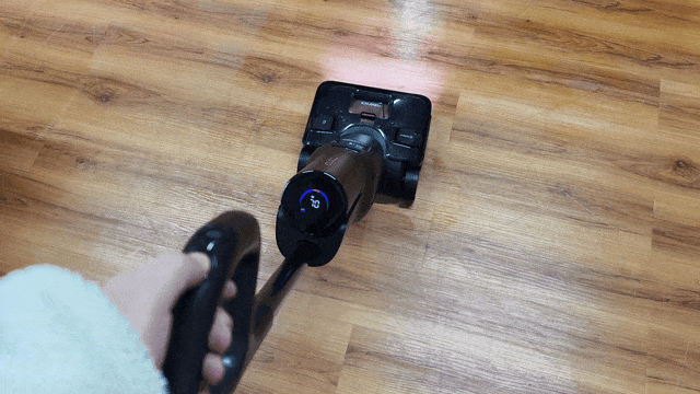 屏幕位于手柄下方,用于显示电量状态、工作状态、清洁模式等信息,同时也支持智能语音提示。