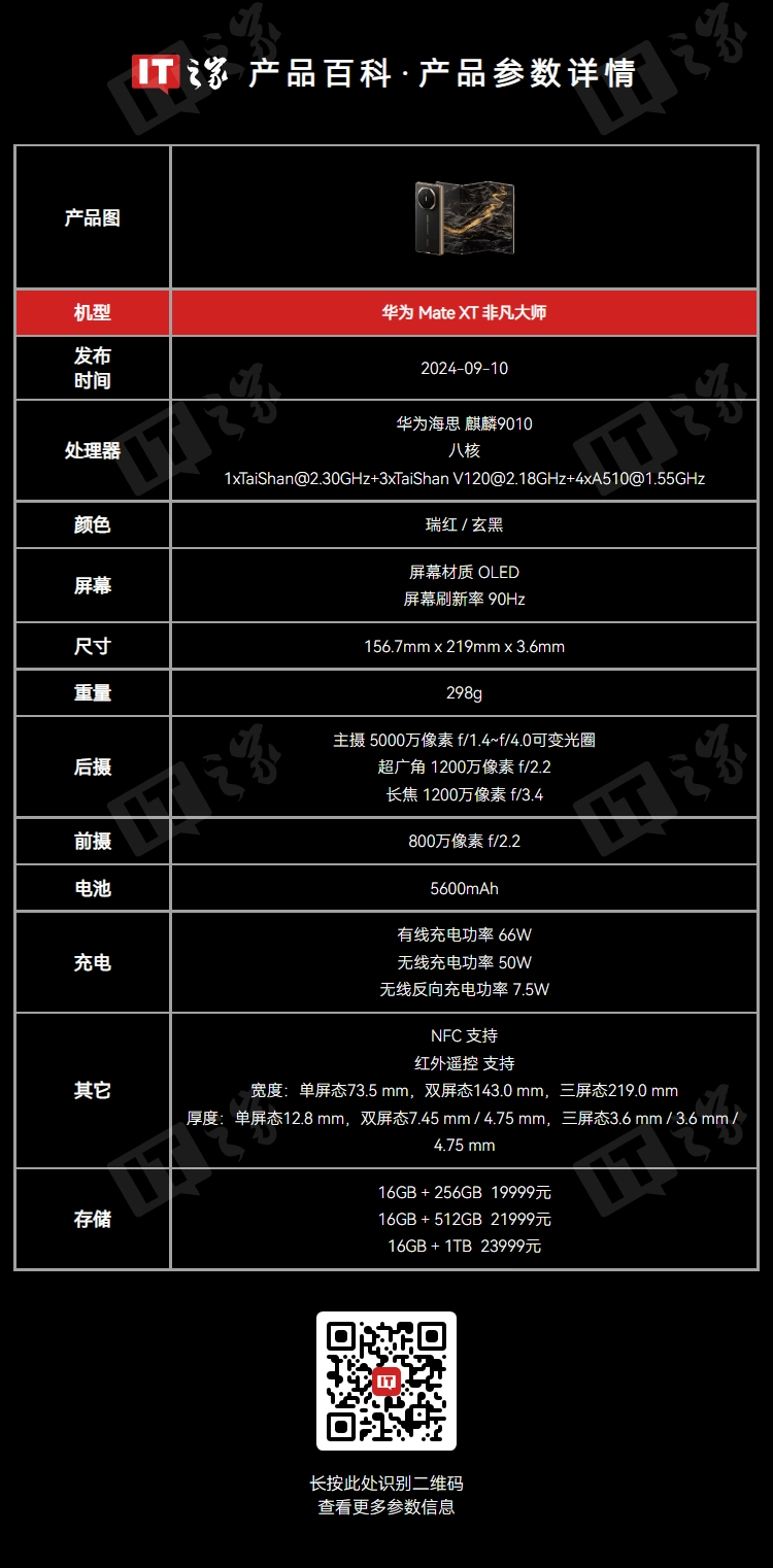 文章来源于互联网:IT之家-三折叠敞开卖:华为 Mate XT“16+512G / 16+1T”版本开启原价现货供应(21999/23999 元)