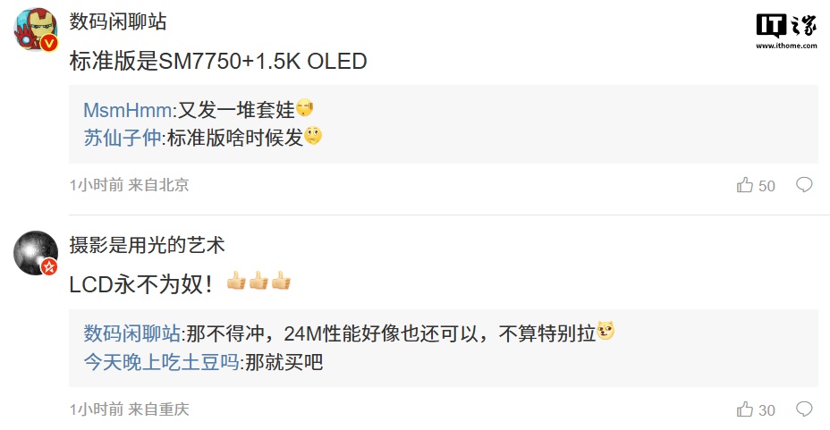 博主还表示 iQOO Z10X 手机采用 LCD 屏,平台代号为 MTK 24M,预计 Q3 上市。另外他在评论区解答了部分网友的问题:针对 Z10 标准版配置情况,他称“标准版是 SM7750+1.5K OLED”;针对 iQOO Z10X 新机,博主表示“24M 性能好像也还可以,不算特别拉”。