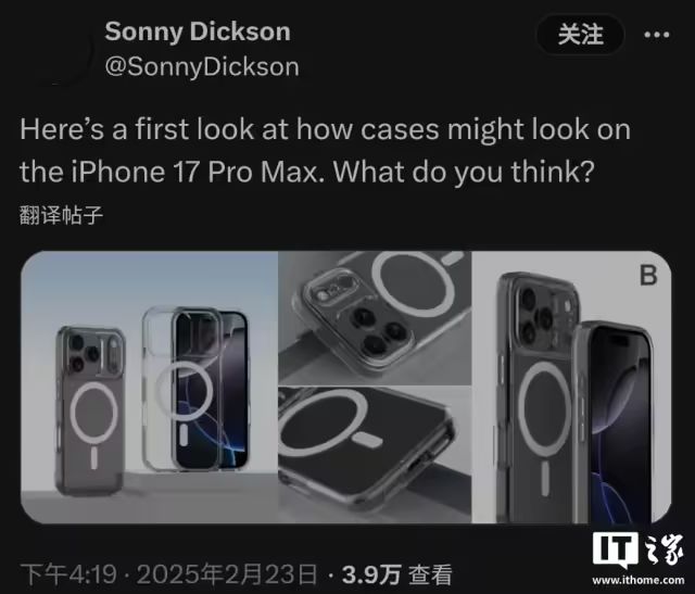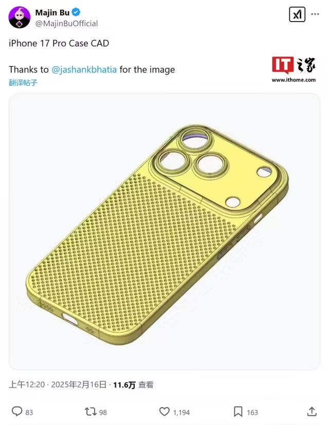 其次是背板材质:同样是来自 Wayne Ma 的报道,iPhone 17 Pro / Max 的背面将采用新的半铝半玻璃设计 ——
