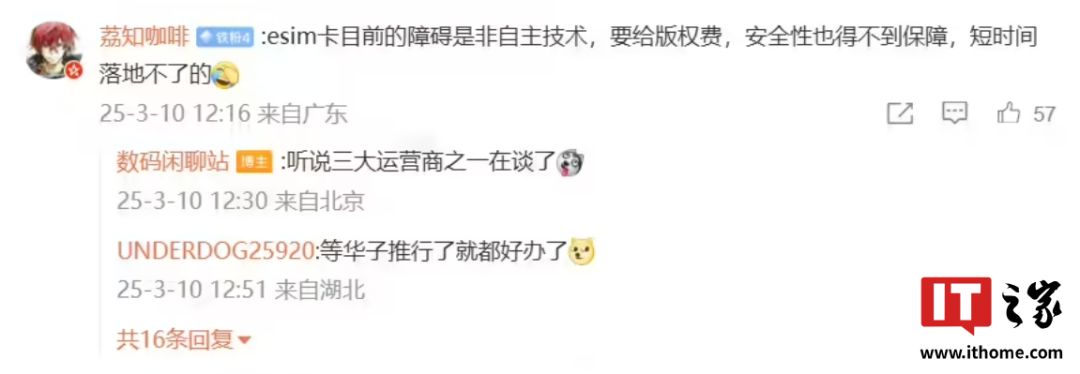 而据该博主透露,“听说三大运营商之一在谈了(eSIM)”。