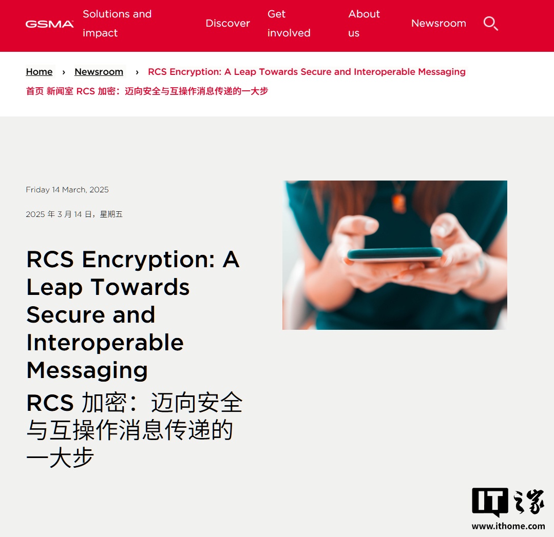 GSMA 表示,从去年 9 月起,便开始推动 Android 和 iPhone 之间的信息传输支持 E2EE。作为一项隐私和安全功能,E2EE 可防止第三方(IT之家注:如消息服务提供商和移动运营商)查看用户的消息内容。