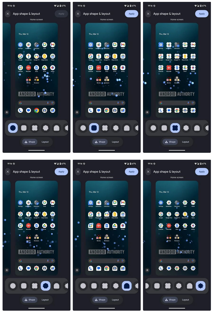 谷歌曾在安卓 11 系统中,引入自定义图标功能,但后因未知原因被移除。在安卓 15 第 2 个季度更新中,谷歌引入了“形状与布局”菜单,但当时功能未激活;直到最近发布的安卓 16 Beta 3 更新,开发者通过逆向工程才成功启用该功能。