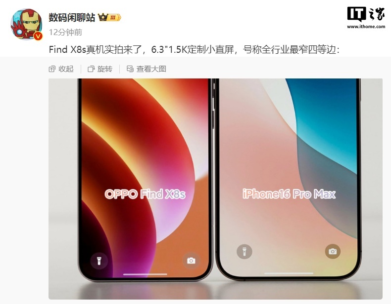 《OPPO Find X8s 真机实拍曝光,号称全行业最窄四等边》