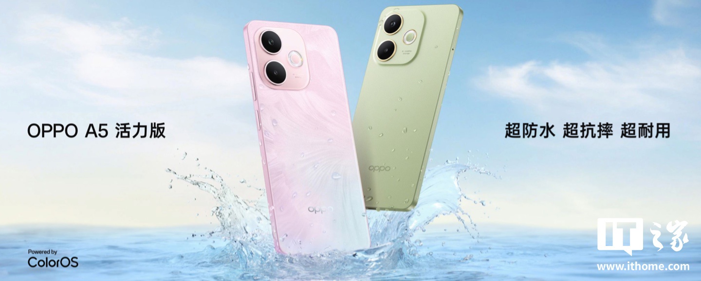 IT之家 3 月 18 日消息,在目前正在继续进行的 OPPO A5 系列手机发布会中,OPPO A5 活力版手机正式发布,该机主打抗摔、防水,定价 1199 元起。