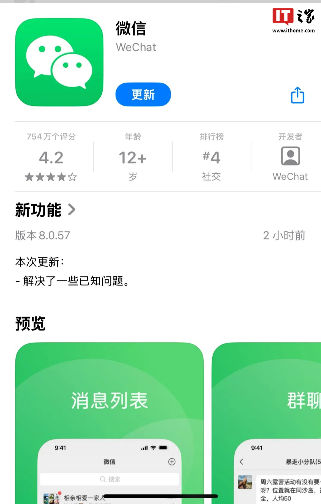 以上就是微信 iOS 平台 8.0.57 正式版的情况了,至于前段时间灰度放量的功能,IT之家小编在此罗列一下,就不展开讲述了: