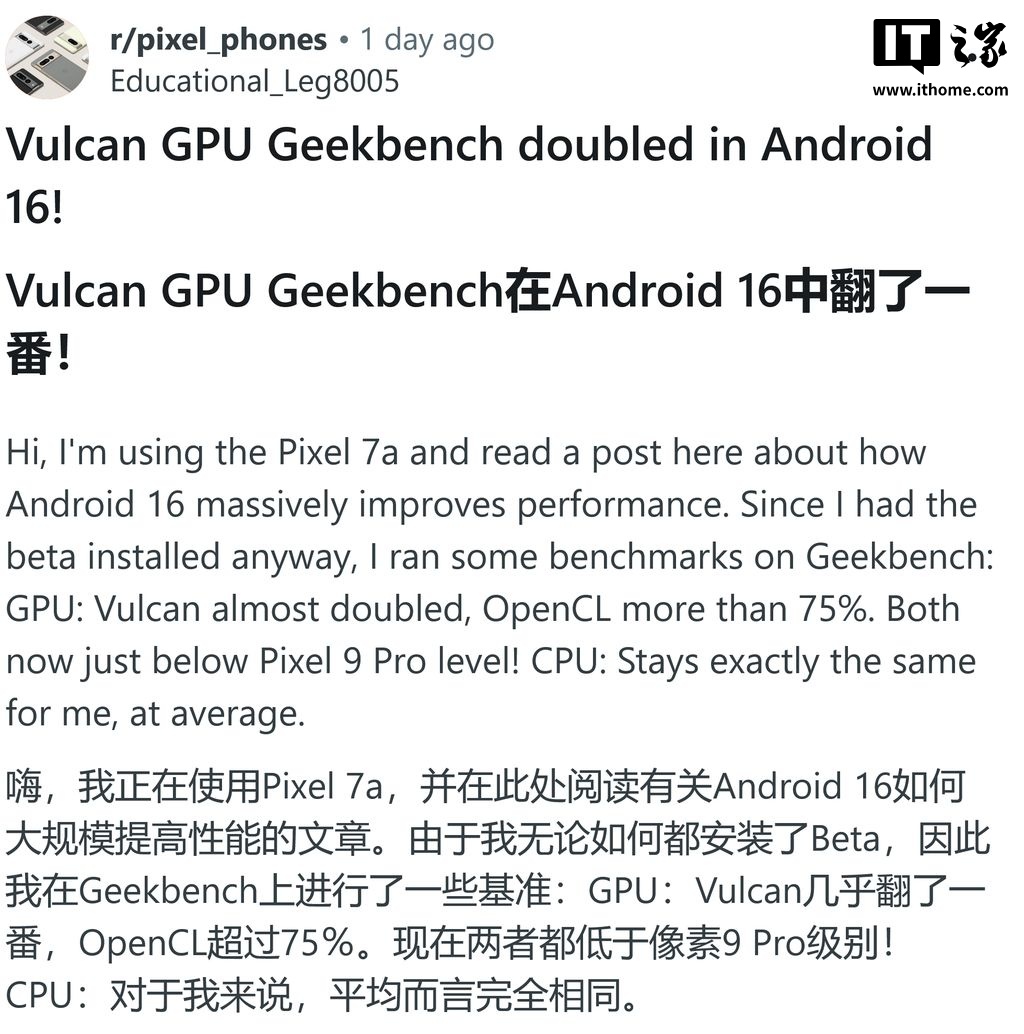 这一现象不仅限于测试版,安卓 15 稳定版用户也报告了类似改进,尽管具体原因尚未明确,但很可能与近期 GPU 驱动更新有关。