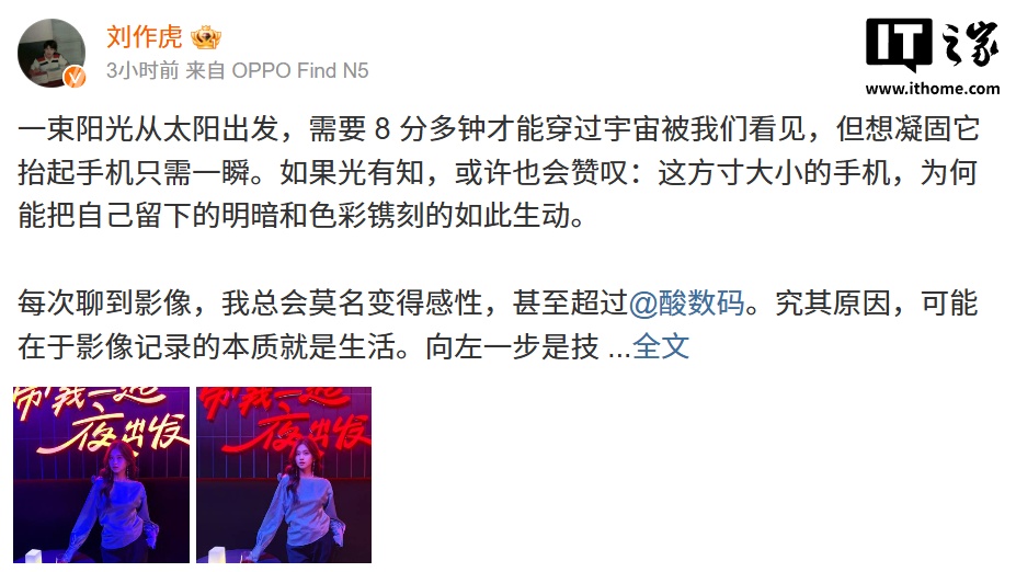 IT之家 3 月 24 日消息,OPPO 首席产品官、一加创始人刘作虎今日在微博对 Find X8 Ultra 手机进行预热,并介绍了新机夜景人像拍摄能力。