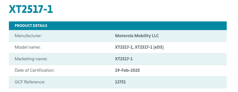 型号为“XT2517-1”和“XT2517V”的 Moto G Stylus 2025 已通过 GCF 认证,认证编号分别为“12751”和“12752”。认证信息显示,这两款设备均支持 2G、3G、4G 和 5G 网络连接。