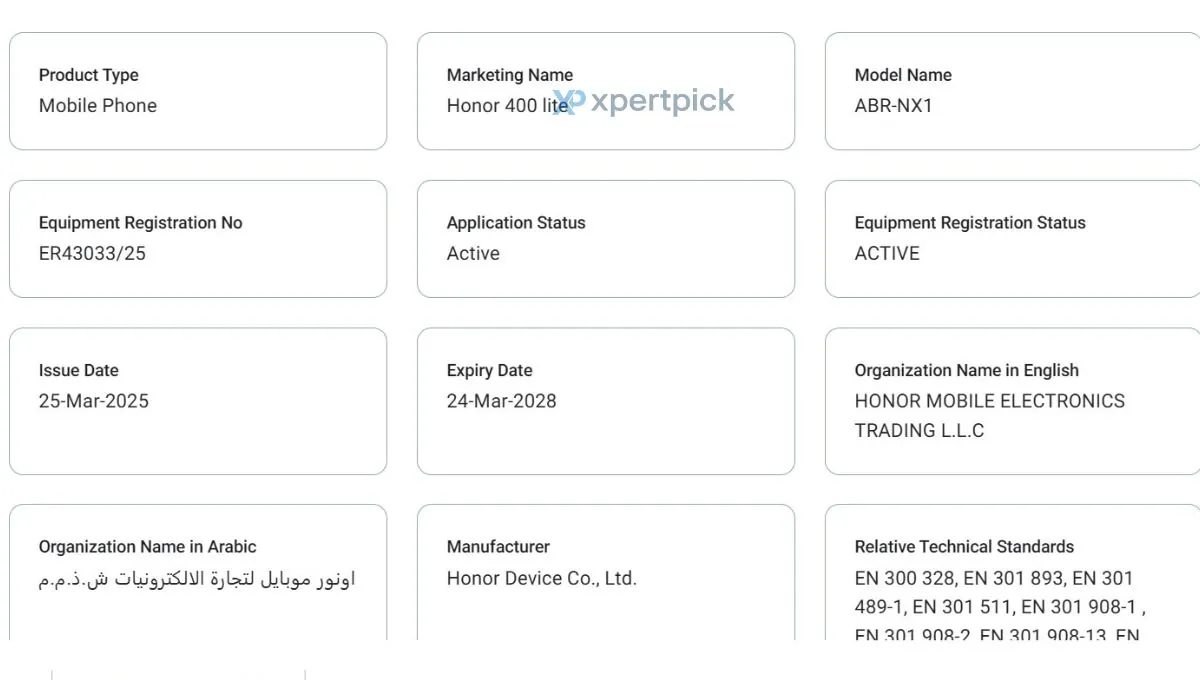 IT之家 3 月 26 日消息,科技媒体 xpertpick 今天(3 月 26 日)发布博文,报道称荣耀中端新机 400 Lite 现身阿联酋 TDRA 认证平台、Geekbench 跑分库及零售商列表,核心配置与售价信息遭全面泄露。