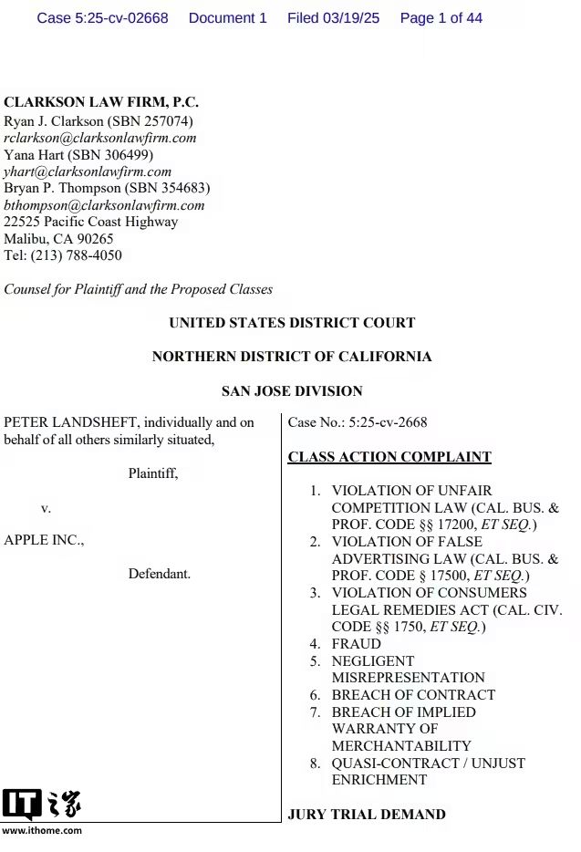 由于未能兑现 Apple Intelligence 承诺,苹果在 3 月 19 日遭大量用户发起集体诉讼。