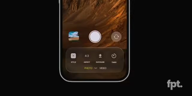 重新设计相机应用,控制选项设计风格与 visionOS 界面相似,以半透明菜单呈现。