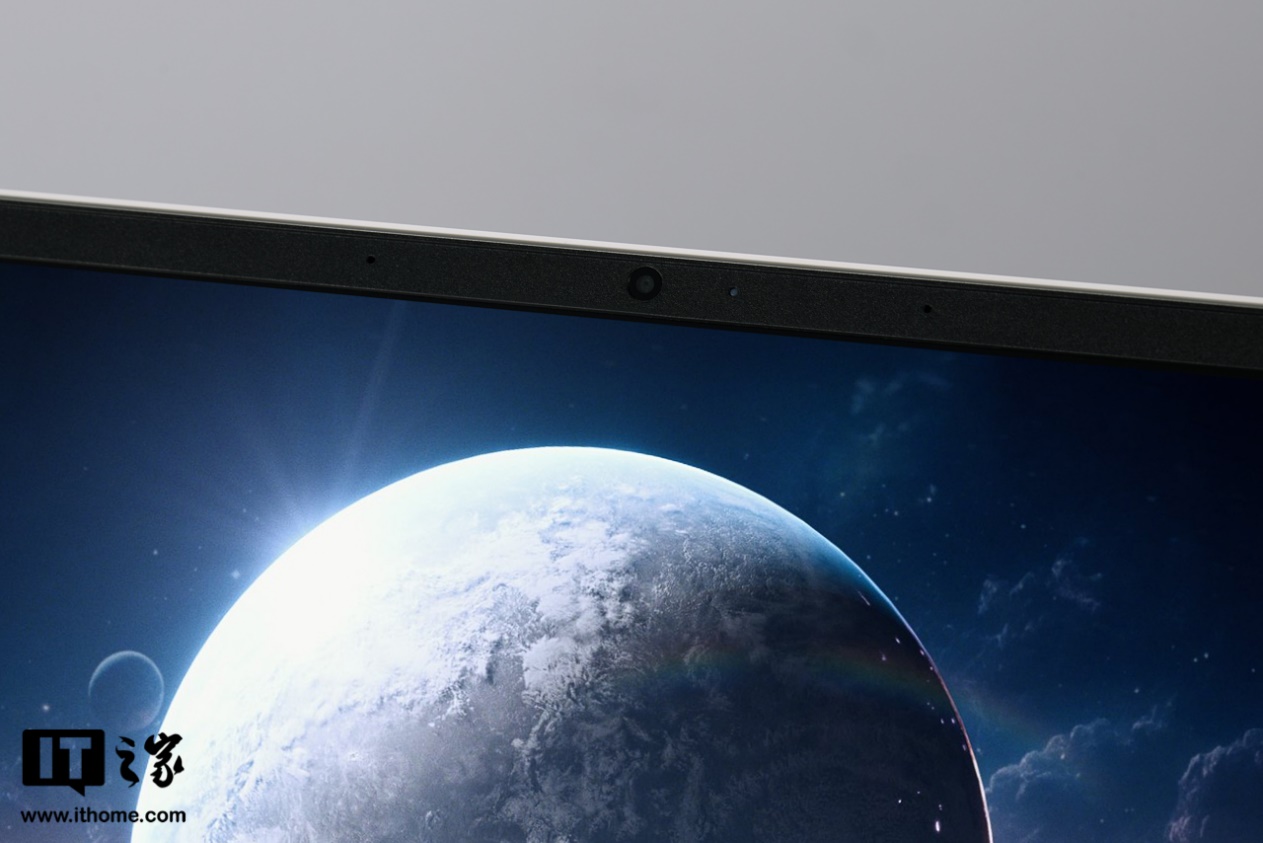 掀开 A 面后不难看到,机器整体其实是一个黑白拼色设计。B 面采用一块 16 英寸 3 面窄边框设计的 IPS 雾面屏。屏幕顶部居中位置有 1080P 摄像头以及双拾音麦克风,底部边框上印有 COLORFUL 的 Logo。