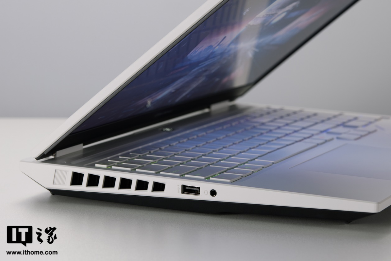 接口部分,隐星 G16 Pro 采用的是三面环绕式布局,机身左侧拥有 1 个 USB3.2 A 口、1 个 3.5mm 音频接口、1 组散热出风口;机身右侧拥有 2 个 USB3.2 A 口和 1 组散热出风口;机身背部则配有 1 个 RJ45 网口、1 个 HDMI 接口、1 个支持视频输出和 PD 快充的全功能 USB3.2 Type-C 接口、1 个圆形电源接口以及 2 组散热出风口。